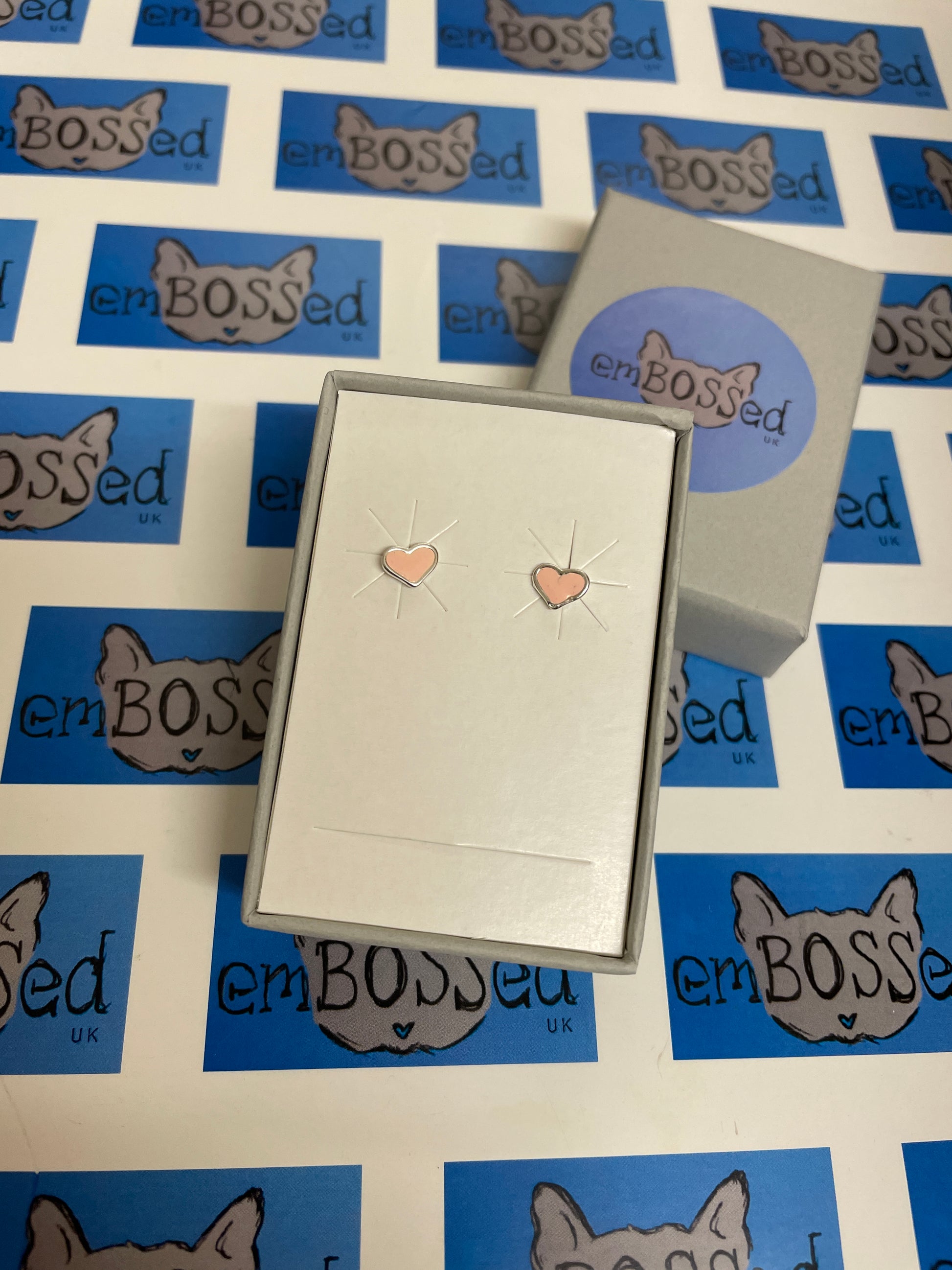 Baby Pink Enamelled Sterling Silver Heart Earstuds 6mm